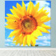 Yellow Sunflower and Bees on Blue Sky - Summer Day Canvas Print