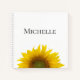 Monogram notebook, with a yellow peeking sunflower image on a pale blue background. With black customizable lettering, you can personalize with your own name. Great for adding a cute style while keeping track of your school assignments.
