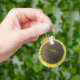 This beautiful keychain features a detailed close-up photograph of a pretty yellow Sunflower. The photograph was taken using macro photography and shows a beautiful contrast between the pale yellow petals and the big dark central seed head of the flower.
