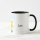Pretty close-up of golden yellow sunflower and light blue cloudy sky. Love is written in black script around white mug with combo black trim. Pretty hand-painted mug to brighten up someone's day. Original Graphic Artwork © TamiraZDesigns.