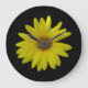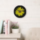 Yellow Sunflower on black background Large Clock