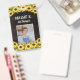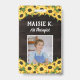 Vertical sunflower ID badge personalized with photo, name, and title with sunflowers against printed wood grain Kindergarten teacher ID badge with a sunflower theme. Art therapist ID badge with a rustic sunflower look with your photo against dark wood grain and bright yellow sunflowers.