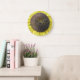 This awesome clock features a detailed close-up photograph of a pretty yellow Sunflower. The photograph was taken using macro photography and shows a beautiful contrast between the pale yellow petals and the big dark central seed head of the flower.