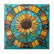 Yellow Sunflowers Faux Stained Glass Aqua Blue Tile