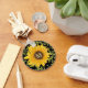 This simple yellow sunflower personalized keychain has a hand drawn watercolor flower on a black background and an editable monogram. Cute and useful, too!