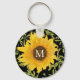 Yellow Sunflowers Floral custom monogram black Keychain