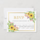 Fleurs de soleil jaune et cadre doré mariage de automne floral RSVP réponse carte avec choix de repas. Ce joli design présente un cadre doré et des tournesols jaunes aquarelles avec des feuilles verts, ainsi que des feuilles et des baies d'automne sur les coins supérieur droit et inférieur gauche et votre texte en or et noir.