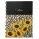 Personalized leopard and sunflowers notebook. Features a leopard design with yellow sunflowers on the front cover. You will be able to easily personalize with a name against the black background.