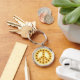 Painting of a yellow sunflower by Cheryl Paton, is repeated to form a peace sign, and is printed on custom keychains. The background colour can be customized.