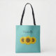 Yellow Sunflowers Teal Green Personalized Tote Bag