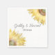 Add a cheerful accent to your summer or fall marriage reception or garden party bridal shower when you personalize the pretty Yellow Sunflower Watercolor Wedding Paper Napkins with the names of the bride and groom and event date. These simple yet elegant custom sunflower wedding disposable napkins feature digitally watercolor painted yellow sunflower blossoms adorning the corners with a white background.