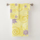 Yellow Swirls with Purple Lotus Flower Pattern Bath Towel Set