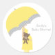 Sweet and chic stickers featuring a pregnant mom-to-be holding a yellow umbrella and little stuffed teddy bear. Perfect for gender neutral baby showers.