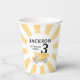 Aquarelle jaune sous les camions du chantier de construction des tasses de papier garçon d'anniversaire.