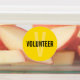 featuring title "volunteer" in black bold sans serif font with light yellow monogram on yellow background.