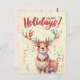 Yellow Watercolor Cute Christmas Lights Reindeer Postcard