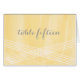 Classic and elegant Watercolor Deco Wedding Table Number Card with a modern striped criss-cross hatched art deco design in white and a subtle yellow watercolor look background. This simple and chic table card can be easily customized with your wedding details. For more personalization options, click Customize.