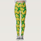 Leggings in a pattern of watercolor roses, in shades of deep to pale butter yellow, against a background of green leaves