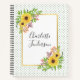 Yellow watercolor sunflowers with green leaves, fall leaves and berries and green, white polka dot pattern notebook.