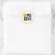 Yellow wavy chequered preppy smile one happy dude classic round sticker.