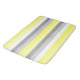 Cheerful shades of yellow, muted greys and white striped bath decor.