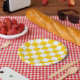 Yellow and White Check Chequered Geometric Squares Pattern Design