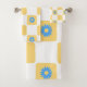 Yellow White Chequered With Blue Flower Pattern Bath Towel Set