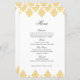 You can customize the text on this yellow, grey, and white damask arabesque floral wedding or special occasion menu card. To change the text, use the personalize option. For more extensive changes to the menu, including changes to the font, font sizes, font colour, or text placement, use the customize it option. A beautiful and elegant choice for a wedding in any season or any other special occasion such as a retirement, anniversary, or birthday party. Yellow, grey, and white is a stylish, traditional choice.