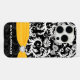 Yellow & White Damask Printed Faux Rhinestone Case-Mate iPhone Case