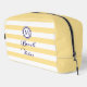 Bring fresh and sunny style on your travels with this classic striped toiletry bag. Featuring buttermilk yellow and white wide stripes, this beach-inspired bag displays your initial as a monogram in a round porthole-style 'frame' for a nautical touch. The 'Beach Vibes' words in script typography add breezy, laid-back charm, perfect for summer seaside vacations, weekend getaways and everyday essentials.