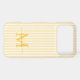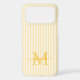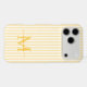 Protect your phone in style with this elegant personalized phone case, designed for a chic and feminine look. Featuring a soft yellow and white striped background, the back of the case showcases your monogram initial and name in a fancy script font, creating a timeless and sophisticated design.
