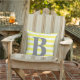 Yellow White Stripes Monogram Initial Square Outdoor Pillow will brighten up your patio furniture.