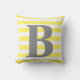Customizable yellow background with white stripes on both sides of the pillow. Big monogram initial in grey centred on front.