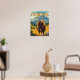 This retro-style travel poster features a bold and colourful illustration of a Yellowstone bison. Set against a backdrop of mountains and a vibrant yellow stone background, this minimalist design captures the essence of the American West. Perfect for nature lovers and fans of vintage design.