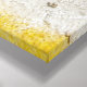 The natural Yellowstone Abstract in Teal and Yellow Wrapped Canvas Print features a scenic landscape nature photograph of a turquoise, yellow and white thermal hot spring pool at West Thumb Geyser Basin at Yellowstone National Park.