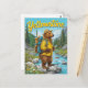 Capture the adventure of Yellowstone with this playful vintage-style postcard. Featuring a friendly bear dressed as a park ranger with backpack and hat, standing by a crystal-clear stream in the mountains, this design blends charm and wilderness spirit. A perfect keepsake for travelers, national park enthusiasts, or anyone who loves Yellowstone’s natural beauty.