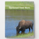 This souvenir photo shows an American Bison or buffalo standing in a clear blue pond drinkking water, in a large green grassy field in Yellowstone National Park in Wyoming. Plenty of space to add your name or vacation dates for a custom personalized memento from Wyoming.