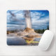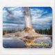 Computer mouse pad is shown with photo print of a geyser in Yellowstone National Park.