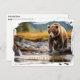 This postcard is shown with a photo print of a grizzly bear in the river in the forest of Yellowstone National Park.