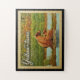 Style de voyage vintage Yellowstone National Park image représentant un ours brun et ses oursons assis au bord d'une rivière avec une forêt verte au-delà.