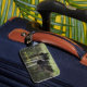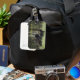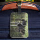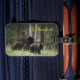 This luggage tag is shown with a photo print of a wild Black Bear with cub in Yellowstone National Park.