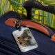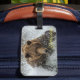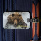 This luggage tag is shown with a photo print of a wild Bear in Yellowstone National Park.