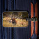 This luggage tag is shown with a photo print of a wild Elk in Yellowstone National Park.