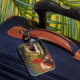 This luggage tag is shown with a photo print of a fish caught wild in Yellowstone National Park.