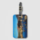 This luggage tag is shown with a photo print of a wild moose in Yellowstone National Park.