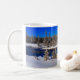 Coffee Mug shown with a photo print of a river winter scene in Yellowstone National Park.