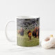 Coffee Mug shown with a photo print of a herd of buffalo in Yellowstone National Park.