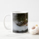 Coffee Mug shown with a photo print of a coyote in Yellowstone National Park.