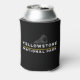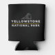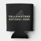 Yellowstone National Park Text with mountain design. Yellowstone National Park contains over 3500 acres of natural park spread over Wyoming, Idaho, and Montana. It sits atop the volcanic Yellowstone caldera and features natural geysers.