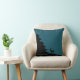 This 16x16-inch throw pillow is shown in a pretty deep colour of teal blue known as dragonfly; it has silhouettes of rocks, tall fir trees and an elk standing beneath the starry night sky. Reminds you of the night you just laid there in Yellowstone and looked up at all those stars, breath taking! Text of Yellowstone written in grey near bottom. Backside is of same teal colour with grey stars on the half-angled.